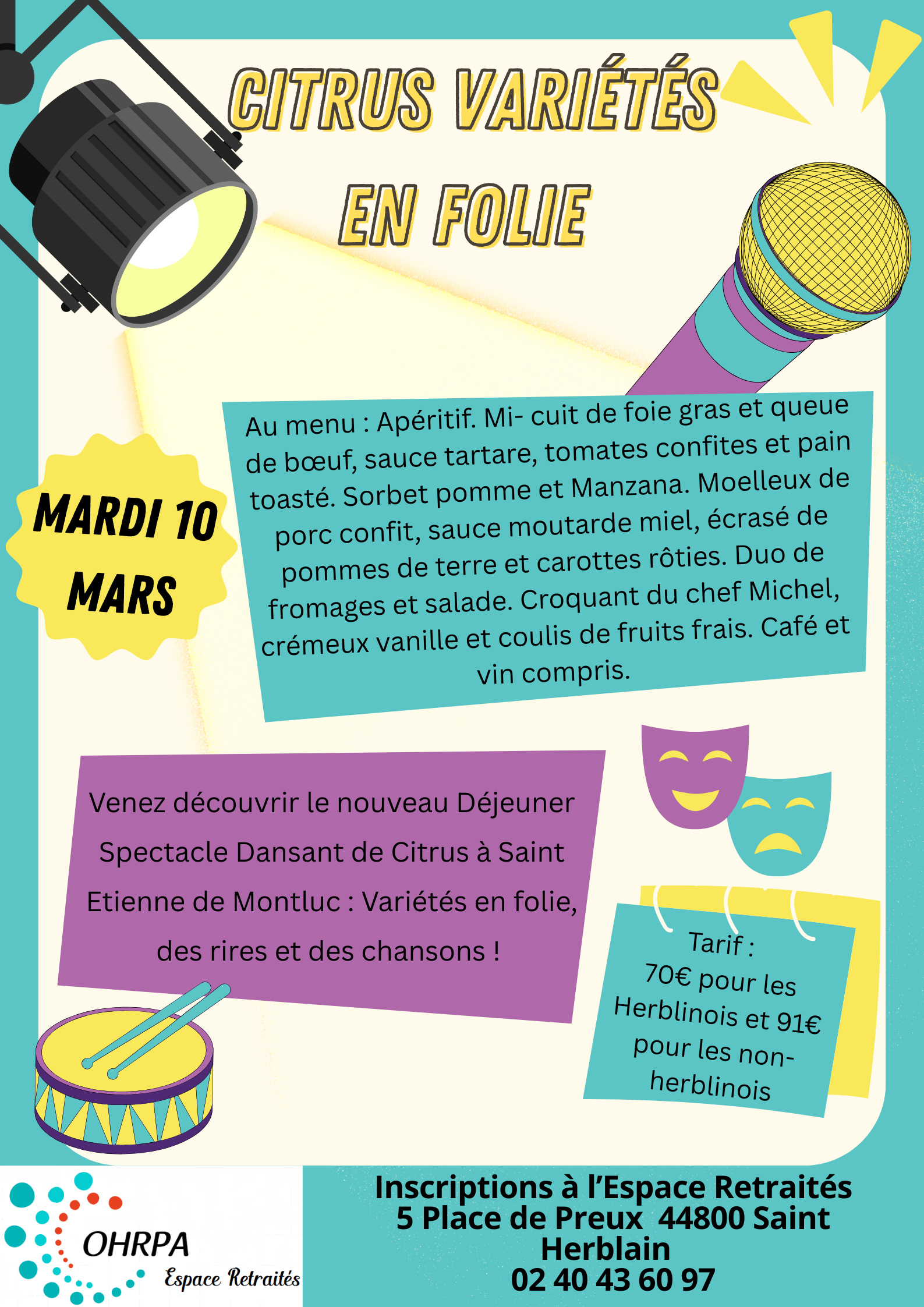 Inscriptions à L’Espace Retraités au 02 40 43 60 97 à partir du 5 janvier pour les Herblinois et du 19 Janvier pour les non-Herblinois.