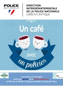 Madame LERAY, commandant de police et son adjoint, vous invitent autour d’un café, à un moment d’échange en toute convivialité dans le cadre de l’opération tranquillité sénior.