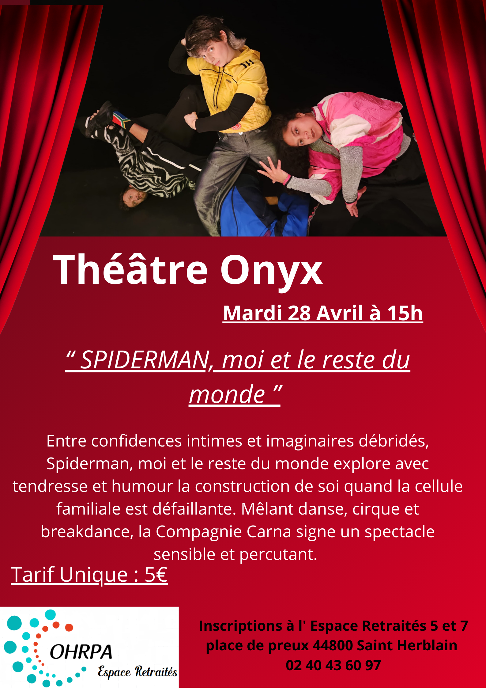 Théâtre Onyx » Spiderman, moi et le reste du monde « , Mardi 28 Avril à 15h.